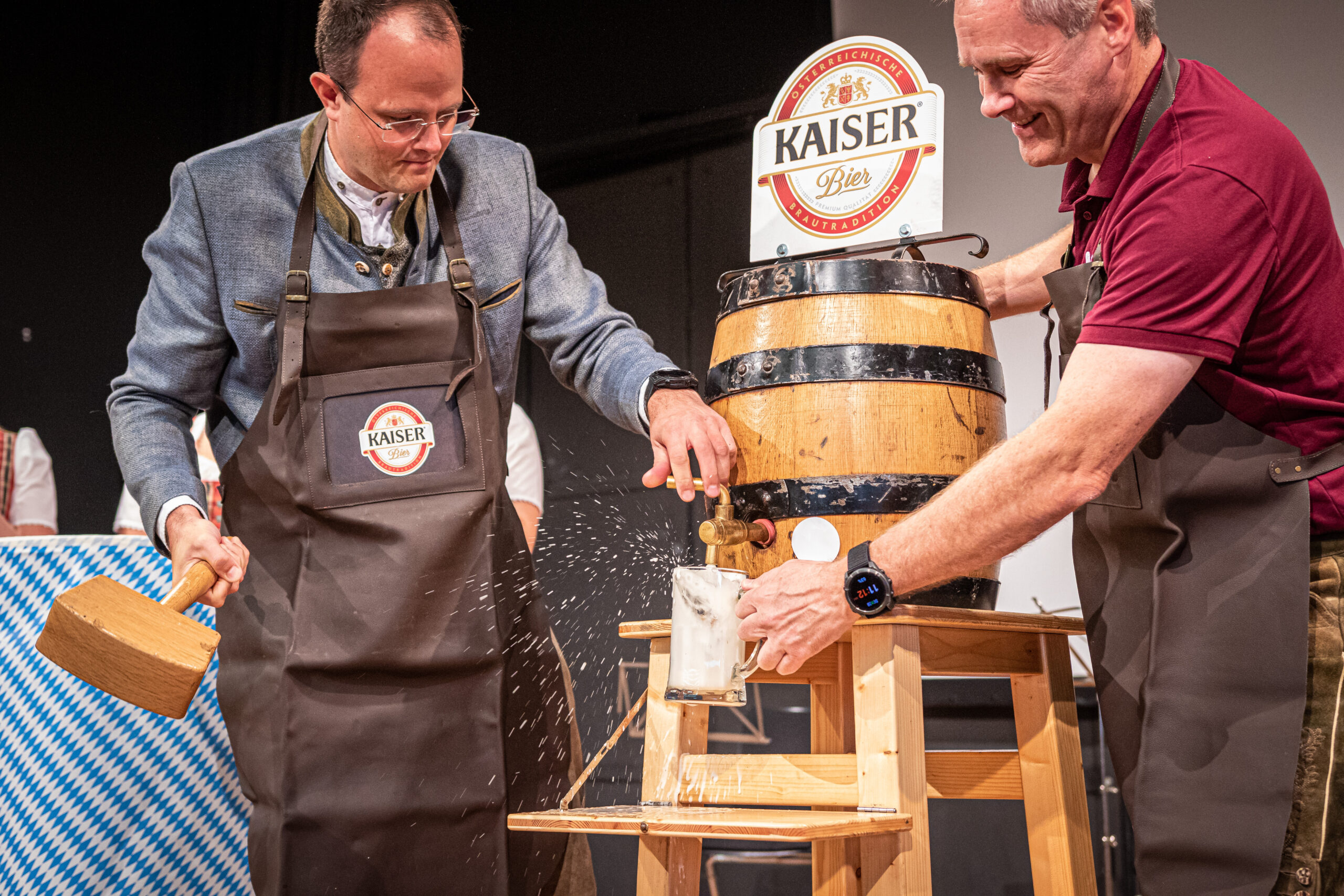 Ein echtes Kräftemessen gab es beim Bierkrugstemmen: Neun Teilnehmer stellten sich der Herausforderung, doch am Ende setzte sich Alexander Starlinger durch. Beeindruckende 2 Minuten und 33 Sekunden lang hielt er den Krug in der Waagerechten – eine Leistung, die für Jubel und Applaus sorgte.
