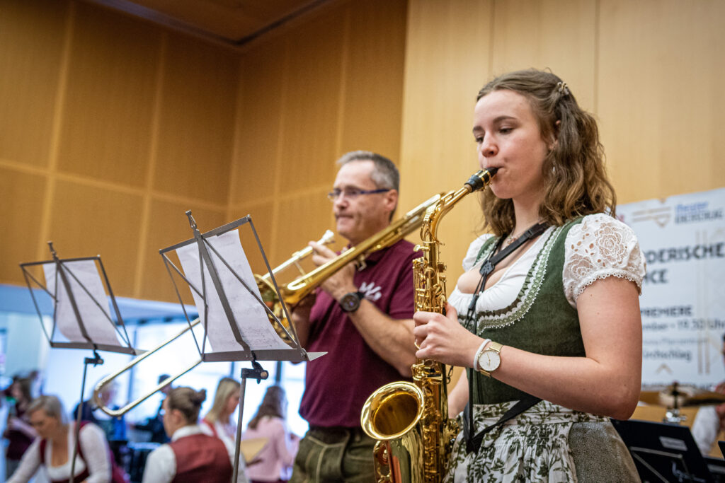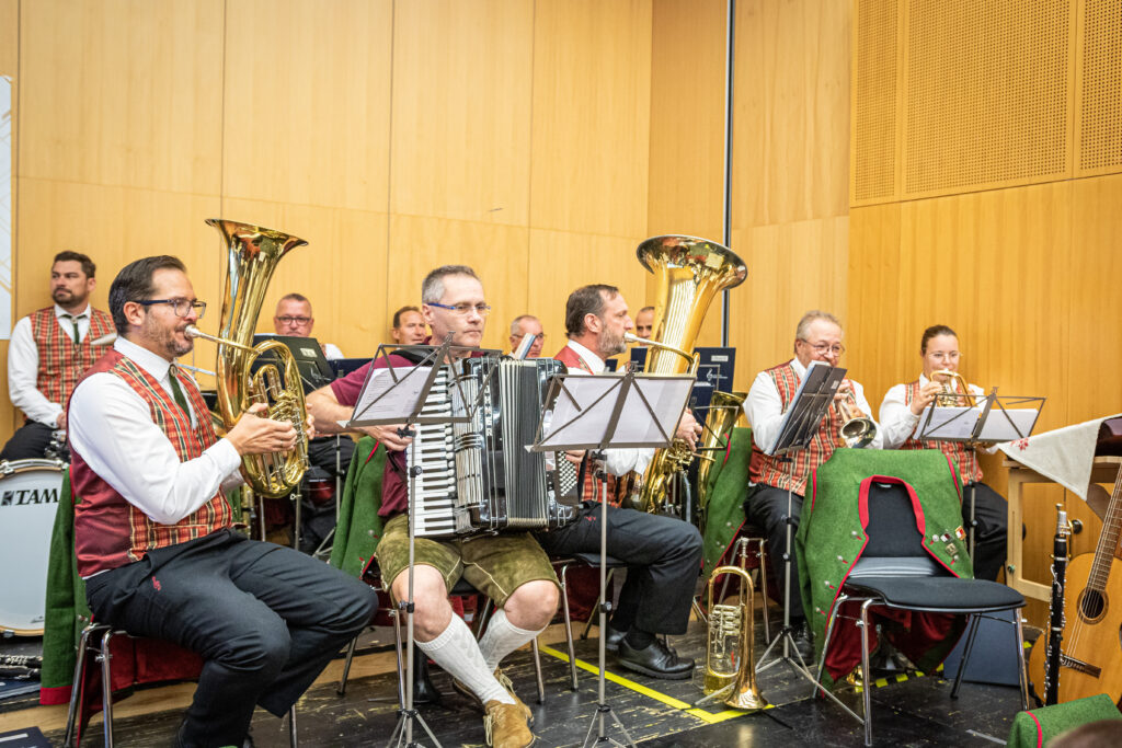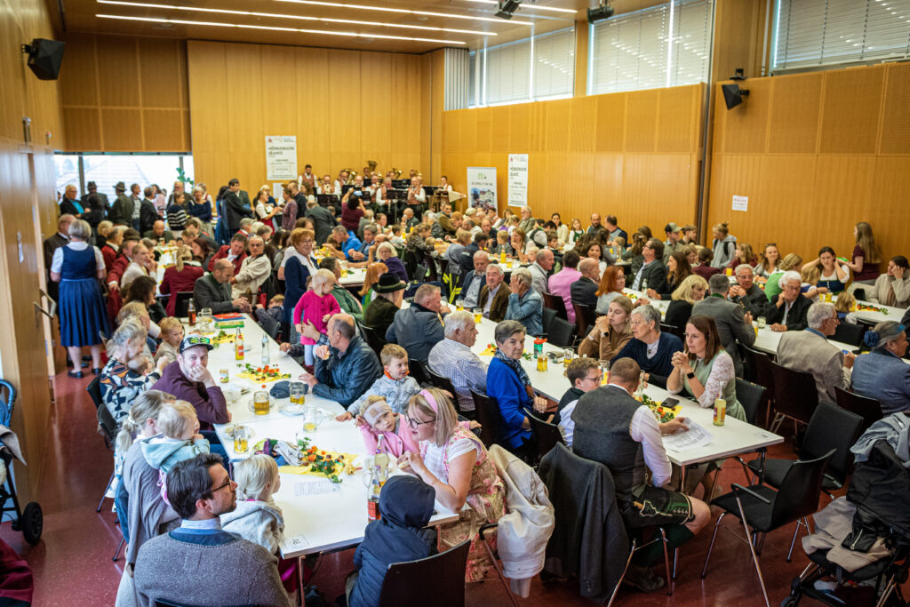 Nach der Messe ging es beim Pfarrzentrum mit dem Tag der Tracht & Musik schwungvoll weiter. Bürgermeister Michael Mair, BSc und Kapellmeister Ing. Christian Kaiser eröffneten den Frühschoppen mit dem Bieranstich. Auf vier Bühnen wechselten sich im Anschluss sieben verschiedene Musikgruppen – darunter die Volkstanzgruppe und Schuhplattler aus Sonnberg – ab und sorgten mit einer gelungenen Mischung für beste Unterhaltung.